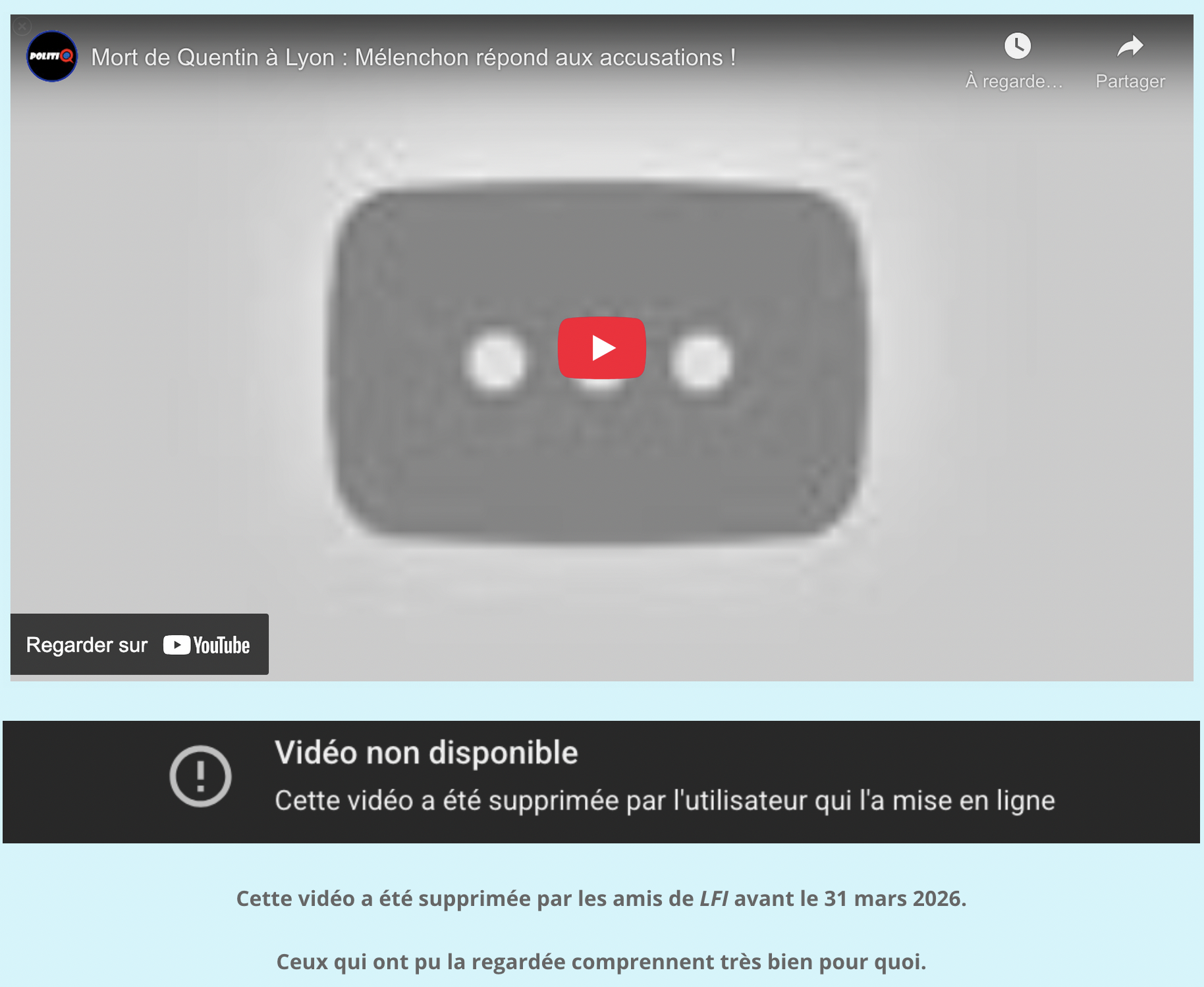 Cette vidéo a été supprimée par les amis de LFI avant le 31 mars 2026.